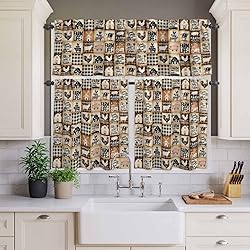 Package Contents: 3-piece kitchen curtain valance each panel includes 1pc 54" W x 18" L (137x45cmx2) curtain valance panel and 2pcs 27.5"Wx 24"L (70x60cmx2) short tiers curtain. Featured Materials: Made of polyester fabric. The short window valances with delicate stitching is well made, the fabric is soft and comfortable, elegant in appearance, the design of the rod pocket is not easy to fall off, it can be used for a long time. Hanging Options: Our 3-piece curtain panel set can be combined and decorated on small windows to make your home more layered and more spacious. Of course, the upper set of rod valance can be decorated separately from the double curtain below, so that your family's each window complements each other for a more harmonious look. Give your bedroom, living room, guest room and kitchen the flavor you want. Update Home Style: Our 3pcs rod pocket printed curtains set add some design and color to your windows for everyday comfort while also keeping your room at the perfect temperature. Short draperies curtains are designed to allow natural light to through the room, making your space airy, these curtains can be hung to enhance the atmosphere of the home and are perfect for adding a luxurious touch to your home decor. Easy Set Up: Each curtain top consists of a 1" head and a 2" rod pocket. (Rods not included) Very handy rod pocket connectors slide easily over your favorite variety of curtain rods while creating elegant pleats with clean lines. Installation is quick and easy.