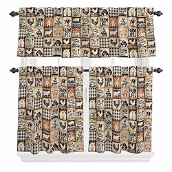 Chucoco Kitchen Curtains Valances and Tier Set, 3 Pieces Rod Pocket Tiers Curtain Small Window Valance Sets Treatment Drapes