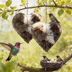 WesGen Handmade Bird Nesting Heart Refillable, 4 Bags Natural Bird Nesting Materials Included, Hummingbird Houses Winter Shelter & Garden Art Gift for Bird Lovers, Outdoor Garden Yard Decoration