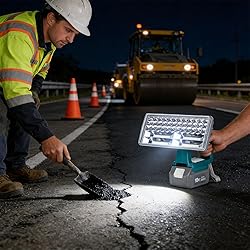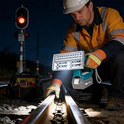 Armed with a 5V/2.1A USB charging port, this light duplicates as a power institution to fee your phone, fan, otherwise other devices during backpacking, travel, otherwise emergencies Highlighting 3 flexible lighting modes, this LED work light proposals 1800s light highlight, twothousandfourhundred light lamp, and four thousand two hundred light combined manner for flexible use in backpacking, wilderness expeditions, otherwise industrial work Developed for high execution, this transportable work light furnishes consistent lighting with a heat immune construction—ideal for crisis lighting, backyard undertakings, and outdoor exploration Direct current 18V 20V lithium particle batteries, this powerful light delivers four thousand two hundred light of extreme brilliant lighting with 84 LED chips (48 lamp and 36 spotlights) for wide coverage and remote illuminating to 700 grounds Constructed with a permanent 9 inch metal alloy head and ABS body, this thin yet strong light is excellent for indoor/outdoor use, including garages, construction locations, backpacking, and wildlife deterrence