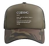 Awesome design - the perfect statement piece for anyone who wants to show their love for Coding and funny humor. With its retro design and funny expression, it is sure to turn heads and start conversations. Looking for unique and memorable gifts for women or men? This eye-catching vintage design is the perfect choice! Great gifts for colleagues, friends and family. Five-panel trucker hat featuring structured foam front, mesh back, and high-profile crown Adjustable fit; one size fits most adults