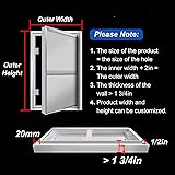 Concealed Access Panel for Drywall is designed for seamless integration into your walls. This access door can be embedded in ceramic tiles, ensuring a flush finish with drywall. Enjoy a discreet and clean installation that matches any tiled surface, making it an ideal choice for homeowners and contractors seeking aesthetic appeal in their projects. Discover the durability of our Inspection Hatch featuring a Reinforced Aluminum Frame. With a width of 3/4" and a thickness of 1 1/8", this robust frame surpasses standard options. The seamless welding ensures a smooth finish, making it both functional and aesthetically pleasing. Built to endure frequent use, this hatch maintains its shape over time, providing reliable performance for your projects. Effortless Access: This Plumbing Access Panel features a user-friendly design that opens and closes smoothly with just a button press. Enjoy quick access to concealed areas behind your inspection service door, saving you valuable time. The magnetic closure ensures a secure fit, making it an essential addition to your home improvement toolkit. 【Easy Wall Installation】Effortlessly create access with our Access Panel. 1. Drill precise holes for the panel cover. 2. Position the panel and secure it using the provided screws. 3. Add extra reinforcement around the hatch door for enhanced stability. 4. Finish by laying down tiles smoothly for a polished look. Ideal for both DIY enthusiasts and professionals. Versatile Applications: Perfect for Plumbing, Electrical, Wiring, Security Systems, Cables, Pipelines, HVAC, Duct Systems, Sprinkler Systems, Water Valves, Clean-Out Access, and Gas Lines. Ideal for various settings including Home, Living Room, Kitchen, Bathroom, Basement, Office, and Attic. Enhance your project with reliable and durable solutions designed to meet your needs.