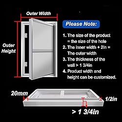 - Our access door panels offer a stylish and efficient solution for concealing cables or unsightly openings in drywall, water valves, and various renovation projects. Designed to seamlessly blend with your walls, these panels can be finished to match the surrounding décor, enhancing the overall aesthetic of your space. **Specifications:** - Material: Durable Aluminum - Frame Width: 3/4 inch - Frame Depth: 1 1/8 inch - Gypsum Board Thickness: 1/2 inch - Customizable Width and Height - Wall Thickness: 1 3/4 inch - Maximum Opening Angle: 120 degrees **Key Features:** - Flush Installation: Panels sit perfectly level with the wall for a clean look. - Sturdy Construction: Engineered for excellent load-bearing capacity, ensuring long-lasting durability. - User-Friendly Design: Easy to open and close with a simple push, facilitating convenient access. - Fire Resistant: Suitable for both residential and public spaces, providing safety and peace of mind. - Custom Sizes: Tailored options available to suit different access requirements. - Effortless Maintenance: Streamlined access simplifies servicing and upkeep. - Superior Sealing: Innovative magnetic design guarantees a tight closure, enhancing insulation. **Package Includes:** - 1 Access Panel - All Necessary Mounting Screws **Important Notes:** - Select the appropriate size to ensure optimal service space. - Allow for slight measurement variations due to manual sizing. - Colors may vary slightly due to differences in lighting and screen settings. Enhance the functionality and appearance of your home or workspace with our access door panels, designed to meet your renovation needs while providing easy access and a polished finish.
