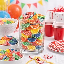 ASSORTED FRUIT SLICES: Classic bite-size fruit slice wedges, chewy textured candy, mouthwatering sweet taste, and comes in many flavors. Old fashioned assorted candy for everyone, all ages! FUN CANDY IN MANY COLORS: Assortment of flavors, and bite-size shapes. Great for your home, after dinners, lunches, meals for your sweet tooth, perfect at work, break rooms, reception desks; convenient for any place. GREAT FOR OCCASIONS: Classic fruits slice wedges, sweet old-fashioned treats for holidays. Perfect for a Birthday Party, Christmas Party, also great for trick-or-treaters on Halloween. Make your day special with those candies. COMES IN A BIG BOX: 5-Pound candy comes in a tray; convenient and keeps your candy fresh. SARAH'S CANDY FACTORY: Repacked from bulk by Sarah's Candy Factory.