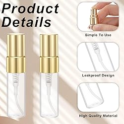Practical Capacity Set: This mini spray bottle set includes ten 3ml (0.1 oz) and ten 5ml (approx. 0.17 oz) glass bottles to meet different capacity needs; the 3ml bottles are approximately 1.5 inches tall (total height 2.3 inches), and the 5ml bottles are approximately 2.95 x 0.55 inches, making them compact and practical. Quality Glass Material: This travel spray bottle product is made of sturdy yet lightweight glass, scratch-resistant and durable, and refillable to reduce waste. Leak-Proof Sealing Design: The perfume bottle caps feature threaded sealing rings for a tight seal, effectively preventing leaks and allowing for safe carrying in bags, suitcases, or cosmetic bags. Portable for Travel: This empty perfume spray bottle's lightweight design makes it easy to carry and allows for quick filling, ideal for travel, fitness, office use, and everyday touch-ups. Versatile and Flexible Use: This perfume travel bottle is not only suitable for perfumes, essential oils, and body sprays, but can also be used for homemade skincare sprays, air fresheners, and home cleaning, making it highly practical.