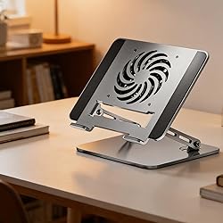 - The Laptop Cooling Stand for Tablets provides a versatile solution for enhancing your device experience with its folding design and adjustable height feature. Integrated with a fan, this portable riser ensures optimal cooling performance for your notebook or tablet during extended use. The mount is suitable for various settings including office, home, or travel, providing comfort whether you are reading, working, or typing. Its adaptability makes it ideal for use on a bed, couch, table, or shelf, while also supporting devices like printers. Crafted to improve airflow and reduce overheating, this stand is a accessory for anyone seeking convenience and functionality in their daily routine. Specification Product name: Laptop Stand Product color: gray Product size: about 23x19.5x30cm/9.06×7.68×11.81inch Product material: carbon steel + silicone List Laptop Stand x 1 Note: 1. Due to lighting effects and display angles, there may be color differences in the product. 2. Due to manual measurement, there may be errors in product size, please understand.