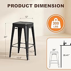 Shahoo 24 Inches Metal Bar Stools Counter Height Stackable Backless Stools, Industrial Patio Stools Indoor Outdoor Metal Kitchen Stools Set of 4 (Black, 24'')