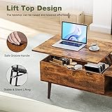 OLIXIS Wooden Coffee Table, Lift Top Coffee Table with Large Hidden Compartment and Ample Storage Shelf, Lift Tabletop Dining Table for Living Room, Home Small Space, Rustic