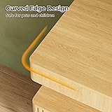 YKVIQBY 26" Tall Fluted Nightstand Set of 2 with Charging Station & LED Light, Modern End Table with 3 Storage Drawers and Pull-Out Tabletop, Wood Bedside Table for Bedroom, Living Room, Natural