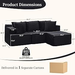 【Ready to Use Right Out of the Box】 This 80" cloud sofa comes in vacuum-compressed packaging. Simply open the package, remove the three individual modules, and gently pat them to allow the high-density foam to expand naturally within 48-72 hours before use. No tools, screws, or complicated instructions are required, eliminating the hassle of traditional furniture assembly and allowing you to instantly enjoy the comfort of a sofa in your busy daily life 【Ideal for Small Apartments】The boneless couch takes up little space but doesn't compromise on comfort and functionality. You can freely combine the three modules to suit your space and lifestyle—it can function as an L-shaped recliner for relaxation or be combined into a small bed for a nap. The well-proportioned and modular design ensures comfortable seating even in limited spaces, allowing those living in small apartments to enjoy a complete and comfortable home experience. 【Deep Seat for Relaxation】Korser sectional couch is designed for relaxation, featuring a 29.5" seat depth that expands to 53.1" with the footrest, providing ample space to stretch out and unwind. High-resilience foam cushions offer proper support for your back and legs; the low, legless design creates a comfortable posture and reduces pressure points. Whether you're relaxing, reading, watching TV, or taking a nap, you'll experience the comfort of being on a cloud. 【Pet-Friendly Corduroy Fabric】This corduroy seat features a tightly woven texture that helps prevent pet claws from easily snagging on the fabric. Pet hair doesn't adhere as easily to this fabric as smoother fabrics and can be easily removed with a lint roller. The durable surface can withstand daily wear and tear from pets, while minor stains, dust, and paw prints are easy to wipe or spot clean, making it ideal for pet owners who value both comfort and ease of maintenance. 【Single-Box Delivery】 This modular sofa is shipped in a single box, with all components delivered at once. This eliminates the hassle of waiting for multiple packages and makes the delivery process easier and more efficient. Whether for personal use, a housewarming gift, or as a thoughtful present for family and friends, the one-box delivery and ready-to-use design allow you to better enjoy a complete home experience.
