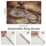 VstaDank Compass And Old World Map Notebook Refillable A5 Binder Notebooks 6 Ring PU Leather Binder Journal Reusable Travel Diary Vintage Planner for Writers Business Work Daily 6.9”x 9”