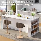 IBF 71" Large Kitchen Island with Storage, White Faux Marble Island Table with Seating for 4-6, Stationary Island Cabinet with Drawers, Fridge Space, Modern Wood Counter Height Island Bar, Only Table