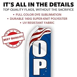 - Large Outdoor Advertising Flag – 11.5 ft tall x 2.5 ft wide premium super flag to boost visibility for businesses, events, and promotions - Durable Super-Knitted Polyester Material – Made from 140 kg polyester designed to withstand high winds and outdoor conditions - Curved Sleeve Design for Free-Flying Action – Curved top sleeve and free-flying edge help the flag grab attention without twisting around the pole Fits Super Flag Poles (Sold Separately) – Reinforced sleeve slides over compatible advertising flag poles; pole and base not included