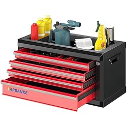 LARBANKE 4-Drawer Tool Box, Portable Tool Box with Lock&Keys,Toolbox with Waterproof and Rust-resistant Countertop,Anti-collision Corner,Special Connection Rods for Stacking with 5/7-Drawer Tool Chest