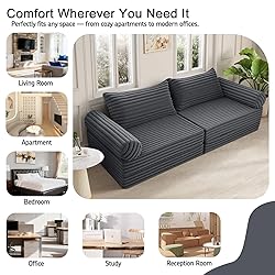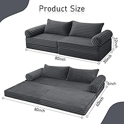 Versatile Design: Convertible sofa bed transforms from couch to bed in seconds. Fold out sleeper couch perfect for small spaces, like apartments, dorms, and guest rooms, etc Premium Comfort: Plush corduroy fabric offers luxurious feel and durability, and foam construction provides exceptional support. Cozy sleeper sofa ensures restful sleep for guests and daily lounging Space-Saving Solution: Compact folding sofa bed is a multifunctional design. The grey foldable couch bed easily converts into a sofa couch, perfect for a floor couch for bedrooms, living rooms, and studio apartments No assembly required: Quick fold-out mechanism converts from sofa to bed effortlessly; flexible design allows for daily use and any room; Includes matching pillows for added comfort Soft Corduroy Texture: Modern convertible futon sofa enhances any room decor; cozy corduroy adds warmth; Durable construction ensures long-lasting use; Available in multiple colors to match your style