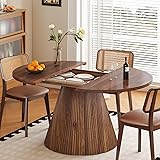 FurSch 43.3"-59" Extendable Oval Dining Table for 4-6-8, Round Adjustable Kitchen Table with Removable Leaves Space Saving, Transformer Dinner Table with Fluted Pedestal Base for Living Room (Walnut)