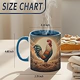 XERNIBROK Majestic Rooster Sunrise Coffee Mug, Farm Chicken Ceramic Mug, Rustic Countryside Morning Gift, Golden Wheat Nest Landscape Art Design, Red Accent 11oz Ceramic Coffee Cup