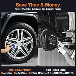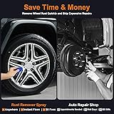 Professional Rust Elimination: Dissolves stubborn rust in minutes, restoring metal surfaces to their original shine without damaging the base material; Safe for chrome, steel, iron, and alloys Long-Lasting Protection: Forms a protective barrier that blocks rust recurrence for over 6 months; Ideal for humid environments and outdoor equipment No Sanding Needed: Advanced formula converts rust into a protective coating, eliminating abrasive scrubbing; Just spray on and wipe off for instant results Multi-Surface Use: Safely cleans car parts, tools, appliances, electronics, and plumbing fixtures; Non-conductive formula prevents short circuits Fast Results: Witness visible transformation in just 5-15 minutes, Our precision-engineered spray nozzle targets rust with surgical accuracy, delivering optimal coverage without overspray; No more endless scrubbing or wasted product while saving time, effort