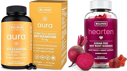 - WellPath Astaxanthin 12mg – Natural Astaxanthin Supplements from Microalgae – Antioxidants with Micro Ingredients, Supports Skin Hydration and Eye Health - 2 Months Supply, 60 Softgels and WellPath Beet Root Gummies (Sugar Free - Blueberry Flavor) 1500 mg | Beet Gummies for Blood Pressure Support | Super Nitric Oxide Gummies | Tasty Beets Chews | Antioxidants | 60 Ct
