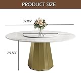 59" Modern Round Dining Table for 6, Glossy Sintered Stone Kitchen Table with Gold Metal Pedestal Paired with a White Turntable for Dining Room (Table Only)