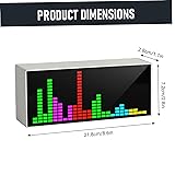 Two Smart Control Modes: Use the built-in microphone for convenient voice control in your room, or connect via the included 3.5mm audio cable for a direct, interference-free sign from your computer, TV, or speaker. It switches automatically when you plug in the cable. Immersive Desktop Atmosphere: Transform your gaming station, studio, or workspace. The colorful LED bars pulse and move with your game soundtrack, music, or movie audio, creating a captivating and personalized ambient light show. Extensive Customization: Personalize your experience with multiple display modes, 7 color themes, 8 brightness levels, and 4 clock formats. With dozens of combinations, you can match the visualizer to your mood or room decor. See Your Music & Time: This device brilliantly doubles as a vibrant music spectrum visualizer and a clear digital desk clock. Watch your audio come to life with dancing LEDs or check the time at a glance-it automatically switches based on sound. Complete & Easy Setup: Everything you need is in the box: the main unit, USB power cable, 3.5mm audio cable, and a splitter adapter. Just plug in power, connect (if desired), and enjoy. No complex software or apps required.,Audio Visualizer, Music Visualizer, Audio Spectrum Analyzer, Spectrum Analyzer, Spectrum Analyzer Home Audio, LED Clock, Desk Clock