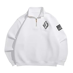 - Unique Design: Oversized quarter-zip sweatshirt with bold red embroidery & American flag patch, blending 90s/2000s vintage streetwear vibes.