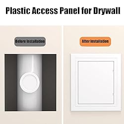 Material : Made from PVC plastic, our plastic access panel for drywall is designed to withstand wear while providing reliable access Convenient Access : The press-fit latch mechanism allows for easy opening and closing, making it perfect for quick access to plumbing, wiring, and more Versatile Installation : Suitable for both ceiling and wall applications, this wall access panel fits seamlessly in any space, ensuring flexibility in placement Easy to Install : Features pre-drilled screw holes and double-sided adhesive for a hassle-free installation process, ideal for every DIY enthusiast Sleek Design : Our attic access door effectively conceals unsightly wall hole covers and electric panel covers, maintaining a clean and professional look in your home
