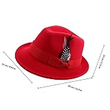 BCOATH Men’s Fedora Hat Red Felt Jazz Hat Classic Flat Brim Fedora for Dress and Events