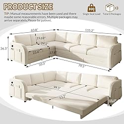 Multi-function design: Our sofa can effortlessly transform into a super large bed (accommodating 5 people for comfortable sleep), a 6-seater sofa, or a stylish lounge chair.It is very suitable for compact living areas and offices, combining practicality with elegance. Whether it's a family gathering, working from home, or relaxing, this sofa bed can meet all your needs, providing excellent comfort and support, and becoming a reliable multifunctional companion in your life. Upgraded Comfort: This sofa is made of high-quality teddy fabric, which looks warm and feels very comfortable. High density sponge filling ensures lasting comfort, making this L-shaped sofa a reliable complement to your home. High quality material ensure stable sleep, with 7 detachable thick cushions providing ultimate support and comfort. Built to Last:The frame of this sofa bed is made of wood and iron, providing long-lasting stable support. The combination of high rebound sponge and skin friendly and durable Teddy fabric provides a long-lasting comfortable experience. One click pull-out design, easy to pull, instantly harvest a spacious and comfortable bed. A single seat with a strong load-bearing capacity of 250 pounds, durable and long-lasting, is your trusted family partner. Added Convenience: Thoughtfully designed with side pockets and USB charging ports, this sofa keeps your essentials organized and your devices powered. The side pockets offer easy storage for remotes and magazines, while the USB ports allow you to charge phones and tablets without leaving the couch—perfect for modern, connected living. Suitable for any scene: This multifunctional pull-out sofa bed can be placed in living room and bedroom,it can be used for guests or children's bed. Mechanism to ensure conversion between seating/sleeping positions, modern design and space saving.Whether the style of your home is Victorian or Mid-Century Modern, this L-shaped sectional sofa will easily fit in. Its L-shaped design maximizes seating space while enhancing the aesthetic of your home. Adapts to Your Space: Whether your power outlet is on the left or the right, your window is on one side or the other, or whether you prefer to have the chaise section against a wall or facing into the room, this sofa can easily be converted into a left-facing or right-facing configuration with a change of its modular sections.