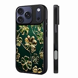 Branwen for iPhone 17 Pro Case 6.3 inch Gold Green Clover Pattern, Compatible with MagSafe, Acrylic Case, Luxe & Bold Style, Men Women, St. Patrick's Day Gift