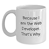- Looking for a unique gift for the web developer in your life? Look no further! Our funny web developer gifts are the perfect way to show your appreciation for their hard work and dedication. Whether it's a birthday, holiday, or just because, our white coffee mug with the quote 'Because I Am The Web Developer. That's Why.' is sure to bring a smile to their face. The web developer in your life will love the humor and creativity behind this gift. It's a great way to show them that you pay attention to their interests and hobbies. Plus, it's a practical gift that they can use every day. The ceramic material is sturdy and easy to clean, making it perfect for daily use. Whether they're a man or woman, this gift is sure to be a hit. So why settle for a boring gift when you can give something that shows you care? Order this funny web developer gift today and make their birthday or special occasion one to remember. Don't miss out and give the gift of laughter and appreciation to the web developer in your life!