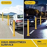 【Excellent Durable Material】: Safety bollard posts are made of high-quality steel, which is strong enough, long-lasting, and able to withstand impacts and environmental factors. And the outer coating prevents the safety bollards from fading easily and prevents rust, ultraviolet rays, oxidation and corrosion. 【High-Brightness Surface】: The appearance of our parking barrier posts is high-brightness yellow and has reflective function, which can be seen even in low light conditions such as at night or in bad weather conditions. Parking bollard posts effectively guide and control the order and safety of vehicle and pedestrian traffic. 【Easy Installation Method】: Each safety barrier bollard will be equipped with screws, and a wrench will be included in the set, allowing you to install it quickly and easily after receiving it. And, the base of each steel bollard post is pre-punched, just drill holes into the installation ground and secure them. 【Wide Application Scenarios】: Safety pipe bollard increases the grounding area by expanding the base, making it more stable and reliable. Traffic bollards can be widely used in garages, roads, parking lots, school gates, storefronts or building doorways to keep vehicles at a safe distance. 【Multiple Sizes Available】: The diameter of the safety parking barrier post is 4.5 inches, and there are three different sizes to choose from: 42 inches and 48 inches. In addition, you can also choose a four-pack or six-pack according to your needs to apply to different scenarios.
