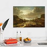 Aert Van Der Neer(River Landscape ) Wall Art Posters Wall Art Scroll Canvas Painting Picture Living Room Decor Home 20x30inch(50x75cm)