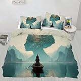 Surreal Landscape Bedding Set - 3D Printed Silhouette & Floating Island Duvet Cover, with Zipper Closure, Dreamy Art Bedroom Decor-104x98in((264x249cm)