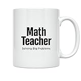 HUMOROUS DESIGN: Features bold 'Math Teacher - Solving Big Problems' text in clean sans-serif lettering, creating an engaging and witty statement piece for educators and math enthusiasts. QUALITY CONSTRUCTION: Made from durable white ceramic material with high-quality printing on both sides, ensuring long-lasting use and vibrant design visibility from any angle. GENEROUS CAPACITY: Holds 11 fluid ounces of your favorite hot or cold beverages, perfect for coffee, tea, or other drinks during classroom breaks or office hours. CONVENIENT CARE: Dishwasher and microwave safe for easy cleaning and reheating, while the lightweight design with comfortable handle makes daily use effortless. VERSATILE GIFT: Ideal present for math teachers, educators, or mathematics lovers for birthdays, appreciation events, or any occasion to celebrate their passion for solving problems.