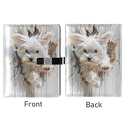 decor gift Leather lined composition notebook Cute Running 3d Maltese Dog White for travelling delicate 6.7×9.2 Inches ,Lined Paper 100 Pages