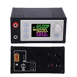 [ADJUSTABLE VOLTAGE REGULATOR] A versatile tool with a wide input voltage range of DC12-72V and output voltage of DC0-65V to suit your power needs. [CLEAR LCD DISPLAY] Monitor key readings like voltage, current, temperature, power, energy capacity, and more on the full view VA color LCD screen. [HIGH EFFICIENCY] Operating at around 95% efficiency, this regulator supports 10 groups of data storage for easy access to your preferred settings. [WIDE APPLICATION] Compact and powerful design makes it ideal for use in mobile power supplies, LED drivers, and laboratory power supplies. [EASY TO USE] Convenient voltage and current settings, shutdown feature, and accurate voltage setting return after power off for hassle-free operations.