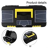 Two-Layer Organized Storage: A 10-inch two-layer plastic toolbox with separate upper and lower compartments keeps screws, nuts, bolts, small hand tools, and hardware neatly sorted and instantly accessible. Heavy-Duty Construction: Made from impact-resistant plastic with reinforced metal hinges and four secure latches, this toolbox withstands daily workshop use while protecting contents from shifting or spillage. Compact Yet Spacious Design: At just 10 inches long, it delivers generous internal volume-perfect for mechanics, DIYers, electricians, and hobbyists who need portable organization without bulk. Integrated Comfort Grip Handle: The embedded, contoured handle offers a stable, slip-resistant hold-designed for repeated lifting and carrying between job sites, garages, or storage shelves. Black Sleek Utility Profile: Matte black finish resists scuffs and blends seamlessly into professional and home environments; measure your gear before ordering-REFER TO THE SIZE CHART PROVIDED WITH THIS LISTING.
