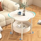 Small Side Table with Double Layer Storage, Bedside Table with Curved Design, Modern Side Tables for Couch Living Room, End Tables Bedroom, Mini Night Stand, Home Decor