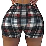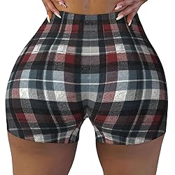 Pioyoku Tartan Plaid (6) Women's Workout Shorts, High Waisted Stretch Biker Shorts for Gym, Running, Yoga & Daily Wear