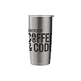 Powered By Coffee And Code statement celebrating programmers and developers driven by caffeine and late night coding sessions. Ideal for software engineers, tech teams, hackathon events, startup offices, and anyone living the coding life Powered By Coffee And Code message featuring coffee icon highlighting developer culture and programming passion. Great for coding communities, computer science students, tech conferences, and digital creators who thrive on coffee fueled productivity Dual wall insulated: keeps beverages hot or cold Stainless Steel, BPA Free Leak proof lid with clear slider