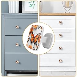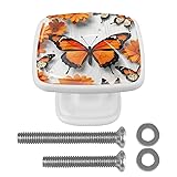 ithuaoats 4 Pack White Square Cabinet Knobs, Orange Butterfly 1-3/16 Inch(30mm) Knobs with Screws Furniture Drawer Pulls Handle for Kitchen Dresser Cupboard Wardrobe Hardware