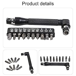 COMPACT 90-DEGREE : 90 Degree Screwdriver, Perfect for tight spaces, this right angle screwdriver low profile design reaches tricky screws easily without wrist strain VERSATILE BIT DRIVER HANDLE: L-shape Socket Wrench Set Screwdriver and Bit Set, Compatible with multiple screwdriver bits and sockets, this bit driver handle supports diverse repair and assembly tasks ERGONOMIC NON-SLIP GRIP: Molded handle offers comfort and control, letting you work securely in demanding workshop or home project conditions LONG LASTING CARBON STEEL: Iron plating and strong build deliver reliable use, forestall wear for consistent performance in garage or professional settings MULTIFUNCTIONAL IRON DRILL WRENCH: Suits carpentry, auto part repair, and machine maintenance, enhancing speed and precision for DIY or trade work