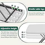 - This foldable table offers 3 adjustable height settings (22"/25"/28"), making it ideal for use as a laptop table, dining tray, or bedside surface. No assembly required-just unfold and start using instantly for convenient setup. Sturdy & Stable for Daily Use Built with a reinforced steel frame and welded joints, this portable desk supports up to 50 lbs with zero wobble. The non-slip, scratch-resistant surface keeps laptops, meals, and crafts securely in place. Space-Saving Foldable Design The table collapses to just 2.5 inches thick, making it easy to store under couches, beds, or in car trunks. It’s perfect for small apartments, dorms, RVs, or camping trips where space is limited. Multi-Purpose & All-Weather Durability With a waterproof and UV-resistant polyethylene top, this table is made to handle spills, rain, and sun exposure. Whether indoors or outdoors, it functions as a TV tray, work table, craft surface, or patio side table — always ready for your next task. Sales Service We stand by our product with responsive customer support. If you have any questions, our team is ready to help. Notes No assembly required-ready to use right out of the box. Wipe clean with a damp cloth for easy maintenance. What’s in the Box 2 × Folding table