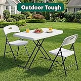 【Commercial-Grade Durability & Stability】 Engineered for daily demands, our folding table features a robust, powder-coated steel frame with reinforced welded joints for maximum stability. The high-density polyethylene (HDPE) tabletop resists scuffs, stains, and moisture, reliably supporting up to 200 lbs—perfect for laptops, meals, crafts, or as a steady work surface at home, in the office, or outdoors. 【Effortless Portability & Quick Setup】 Say goodbye to complicated assembly. This ultra-lightweight table (10.25 lbs) sets up in seconds—simply unfold and lock the legs. It folds down to a slim 4-inch profile (32.37" L x 20.25" W x 4" H), making it incredibly easy to store under a couch, in a closet, or carry in your car trunk to any location. 【3-Way Height Adjustment & Perfect Fit】 Customize your comfort with three height settings (22", 25", 28"). Easily switch from a sofa-side laptop desk, to a proper dining tray, to a standing work surface. The generous 30" x 28" top provides ample space for all your needs, seamlessly adapting to your posture and furniture. 【All-Weather & Easy-Clean Surface】 Designed for both indoor and outdoor versatility. The waterproof HDPE top and rust-resistant steel frame withstand occasional spills, sun, or damp conditions. The smooth, granite-textured finish wipes clean instantly with just a damp cloth, ensuring effortless maintenance after any use. 【Versatile for Endless Occasions】 Your go-to solution for multiple settings. Use it as a TV tray, a portable office or gaming station, a craft table, a bedside desk, or compact dining for camping and RVs. Its sleek, neutral design fits any decor and lifestyle, providing a sturdy surface wherever and whenever you need it.design complements any decor.