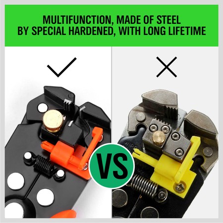 - ✔CLEVER DESIGN - Plastic & cushion grip handle, provides maximum leverage (PP& TPR) and increased comfort and reduced hand fatigue making the grip Self Adjusting. Wire Stripping Tool perfect for big or small jobs.