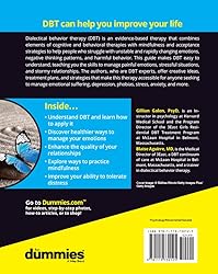 - Keep calm, be skillful―and take control!Dialectical Behavior Therapy (DBT) is one of the most popular―and most effective―treatments for mental health conditions that result from out-of-control emotions. Combining elements of Cognitive Behavior Therapy with Eastern mindfulness practice, DBT was initially used as a powerful treatment to address the suffering associated with borderline personality disorder. It has since proven to have positive effects on many other mental health conditions and is frequently found in non-clinical settings, such as schools. Whether you struggle with depression, anger, phobias, disordered eating, or want to have a better understanding of emotions and how to focus and calm your mind, DBT practice serves the needs of those facing anything from regular life challenges to severe psychological distress.Written in a no-jargon, friendly style by two of Harvard Medical School's finest, DBT For Dummies shows how DBT can teach new ways not just to reverse, but to actively take control of self-destructive behaviors and negative thought patterns, allowing you to transform a life of struggle into one full of promise and meaning. Used properly and persistently, the skills and strategies in this book will change your life: when you can better regulate emotions, interact effectively with people, deal with stressful situations, and use mindfulness on a daily basis, it's easier to appreciate what's good in yourself and the world, and then act accordingly. In reading this book, you will:Understand DBT theoryLearn more adaptive ways to control your emotionsImprove the quality of your relationshipsDeal better with uncertaintyMany of life's problems are not insurmountable even if they appear to be. Life can get better, if you are willing to live it differently. Get DBT For Dummies and discover the proven methods that will let you take back control―and build a brighter, more capable, and promising future!
