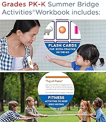 - Bridging Preschool to Kindergarten for kids ages 4-5Build a bridge of learning opportunities for your soon-to-be kindergartener―from school to home and back again in just 15 minutes a day with engaging children’s books, manipulatives, and learning adventures―all in one bundle!Summer Learning Kindergarten Workbooks, Phonics Flash Cards, and Kid’s Books are a great way for to reinforce preschool learning skills and prep your preschooler for kindergarten through phonics, math, science, reading comprehension, and handwriting activities that are both fun AND educational!Why You’ll Love This Summer Learning BundleEngaging and educational preschool and kindergarten active learning adventures. Toddlers can practice their reading comprehension skills with the included children’s books, as well as alphabet learning with the alphabet flash cards. The Summer Bridge Activities Prek-K Workbook features phonics, early learning, math, science, and handwriting activities, and includes flash cards, stickers, and fun fitness activities, too!On-The-Go Learning Fun. Each kindergarten learning resource is stored securely in the durable drawstring bag so your child can practice skills on-the-go.About Summer Bridge Activities®Summer Bridge Activities research-supported products build a bridge of learning opportunities from school to home and back again! Daily activities engage children in a variety of quick, 15-minute active learning adventures that just might be their favorite time of the day.The Preschool & Kindergarten Summer Learning Bundle Contains:Summer Bridge Activities PreK-K WorkbookAbc flash cards4 Children’s BooksEnglish User Guide