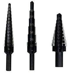 Multi Made in the USA Irwin step drill bit set includes a number 1 bit, number 2 bit and number 3 bit High-speed steel allows you to work quickly on most materials Straight bit flute protects thin materials from distortion during drilling Irwin drill bit set includes on-bit measurement marks for accuracy Specialized tips prevent skidding at connection point, under pressure