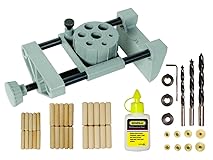 Revolving turret accommodates six drill bit sizes Assures accurate line up of dowel holes with graduated guide points for fast positioning Locks onto work piece from 0 - 4" width Steel stops adjust the depth of the cut Dowel diameters supported: 1/4 in., 5/16 in., 3/8 in.